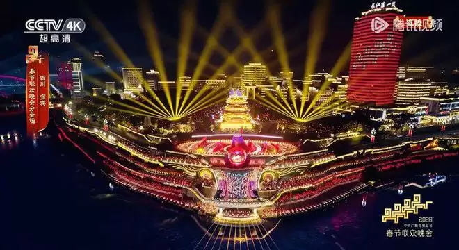 2月16日晚上9点,中央广播电视总台《2026年春节联欢晚会》进入“宜宾时间”,7分27秒贯通古今的光影华章,让全球重新遇见宜宾:“立上游”为魂,一座城市的担当与气象跃然屏前;“请春酒”为脉,一场四川非遗年俗嘉年华尽现蜀地安逸和热辣滚烫;赴“未来”之约,一马当先在“一蓝一绿”产业赛道骐骥驰骋,势不可挡。