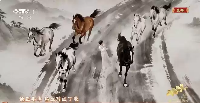 在《驭风歌》节目里,徐悲鸿的《六骏图》就活了起来。这不是简单的让马跑起来,水墨画的特点是笔触和墨韵,稍微处理不好,要么变成普通的动画片,要么水墨感全无。此前,很多国际领先的视频生成模型,都难以理解中国水墨画的构图和逻辑,生成的视频容易出现变形。