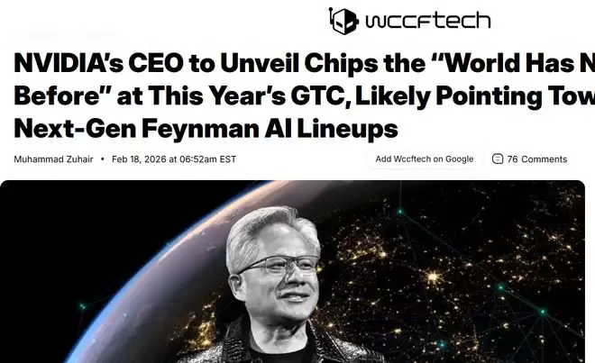 【环球网科技综合报道】2月19日消息,据外媒wccftech报道,英伟达首席执行官黄仁勋在接受媒体采访时,对即将到来的GTC 2026大会进行预热,明确表示将在会上揭晓“世界前所未见”的全新芯片,引发业界广泛关注。