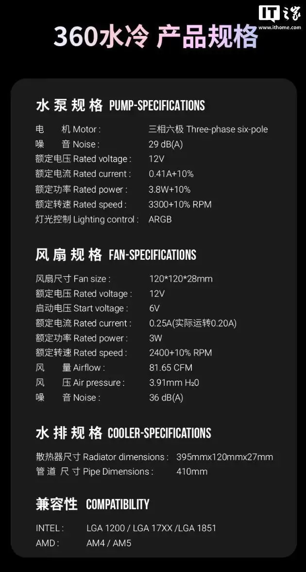 艾湃电竞水冷散热器YOGA+360一体式,预售价799元