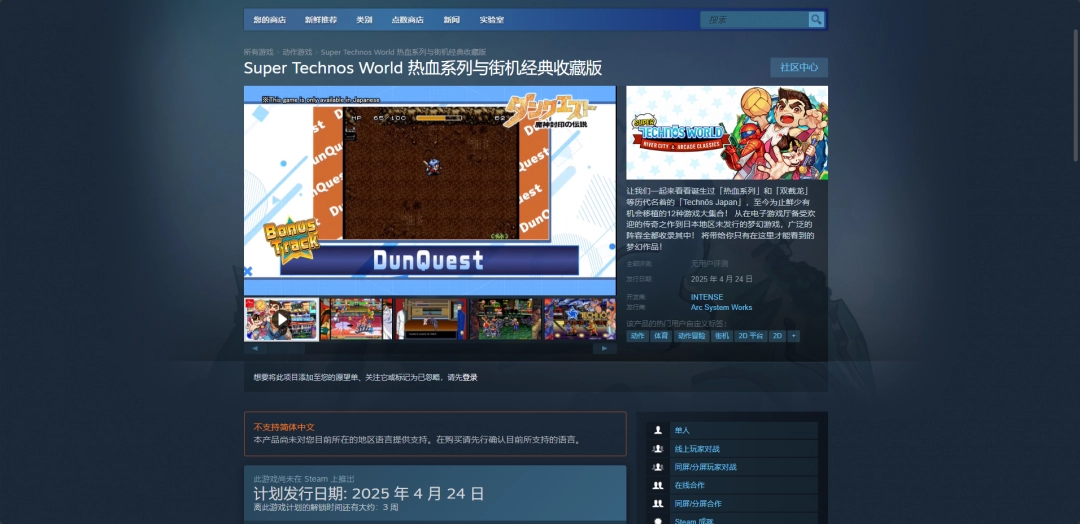 在Steam平台购买前,你需要先下载并安装Steam客户端,注册并登录账号。之后在商店搜索框输入“Super Technos World 热血系列与街机经典收藏版”,进入商品页面完成购买流程。