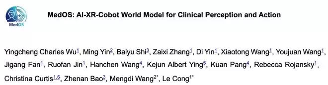 今天,来自斯坦福大学的丛乐、普林斯顿大学的王梦迪、斯坦福大学鲍哲南等研究团队,联手NVIDIA、Nebius、VITURE及AI4Science Catalyst Institute,正式发布MedOS世界模型。