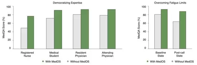 突破人类极限:医生也是人,会疲惫,会受到情绪干扰。 实验数据显示,MedOS能部分消除人类操作中的生理震颤与偏差。更重要的是,它能让疲惫不堪的值班医生,在决策和操作表现上回升至、甚至超过最佳状态,有望成为医疗安全的硅基防线。