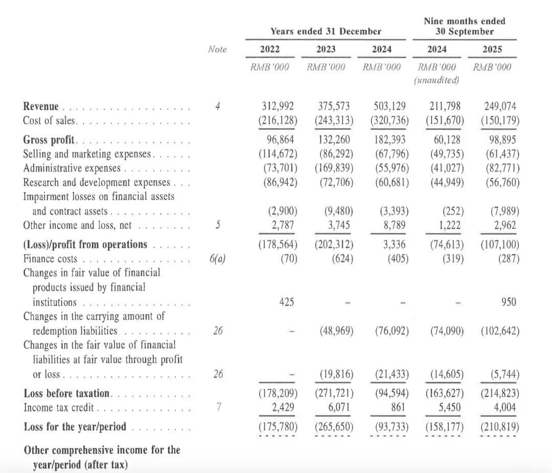 财务数据揭示成长阵痛。2023至2024年,公司营收从3.13亿元增至5.03亿元,复合增长率26.8%,但同期净亏损累计达5.36亿元。2025年前三季度营收2.49亿元,净亏损却扩大至2.11亿元。公司解释称,高额亏损源于持续的技术升级投入与商业化前期成本。截至2025年9月末,现金储备仅余4249万元,流动性压力凸显。股权结构显示,管理层通过直接持股与员工持股平台合计控制27.39%股份,君联资本、BAI资本等机构投资者合计持股超26%。