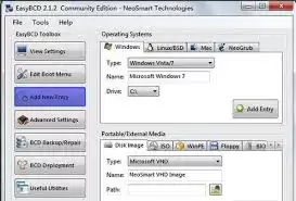 在 EasyBCD 的主界面中,找到“添加新条目”选项。点击该选项后,会弹出一个下拉菜单,您可以看到多种引导选项。