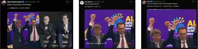 当时的场面极度尴尬,台上的AI大佬们纷纷牵手举高,这二位却硬生生把气氛降到了冰点——