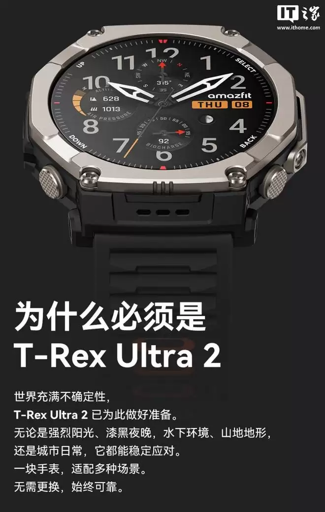 IT之家 2 月 20 日消息,AMAZFIT 华米 T-Rex Ultra 2 手表现已上市,新品主打户外探险人群,具备双频全星座定位、离线地貌图等特性,售价 3999 元。