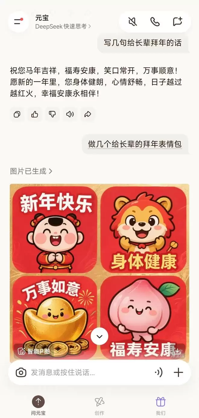 这套逻辑,在现实中解决的是真实存在的痛点。有一类用户的感受很有代表性——过年最怕的就是在亲戚群里不知道说什么,长辈问起工作、收入、感情,往往不知道怎么接;而对方也未必真的想要一个确切的答案,只是需要一个互动的由头。用AI帮忙写了几句拜年话、做了几个专属表情包,一下子化解了这种尴尬。AI在这里扮演的角色,是“社交嘴替”,它能帮你把想说但说不出口的东西,变成一个具体的动作。