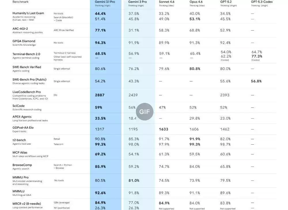 据了解,基于Gemini 3系列构建的3.1 Pro版本,在核心推理能力上实现了显著提升,成为应对复杂问题更智能、更强大的基础模型。