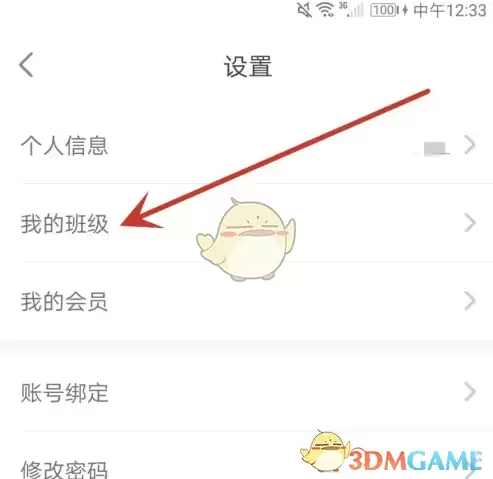 3、最后,在设置菜单里,找到并点击箭头指向的“我的班级”选项,就能看到你的班级信息了。