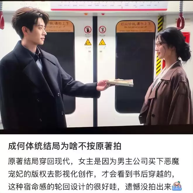 张三主动购入小说《穿书之恶魔宠妃》并影视化,促成庾晚音穿越,形成“书中书”轮回闭环。而剧版删除了出版影视化设定,现代相遇改为偶然,就削弱了宿命感,显得没有逻辑。