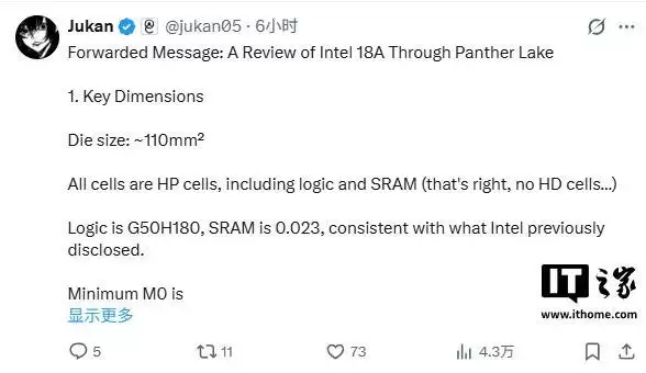 IT之家2月21日获悉,分析师@jukan05 今日转发了一份关于英特尔Panther Lake架构的深度技术分析报告,披露了首款基于Intel 18A制程的CPU产品的关键设计参数。