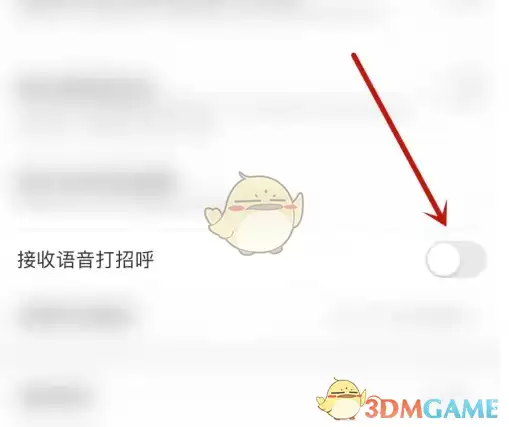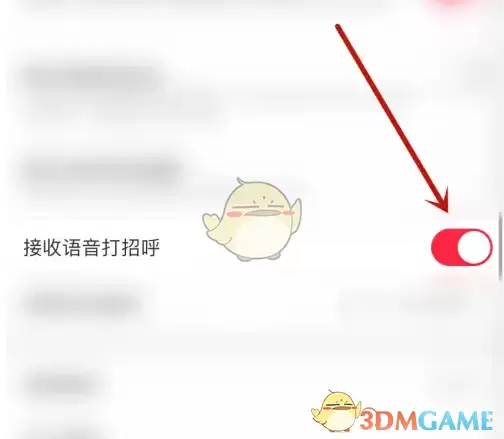 3、在设置页面中,找到“接收语音打招呼”选项,点击其右侧的圆形开关。