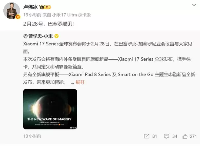 小米17系列2月28日全球发布:多款生态新品齐亮相