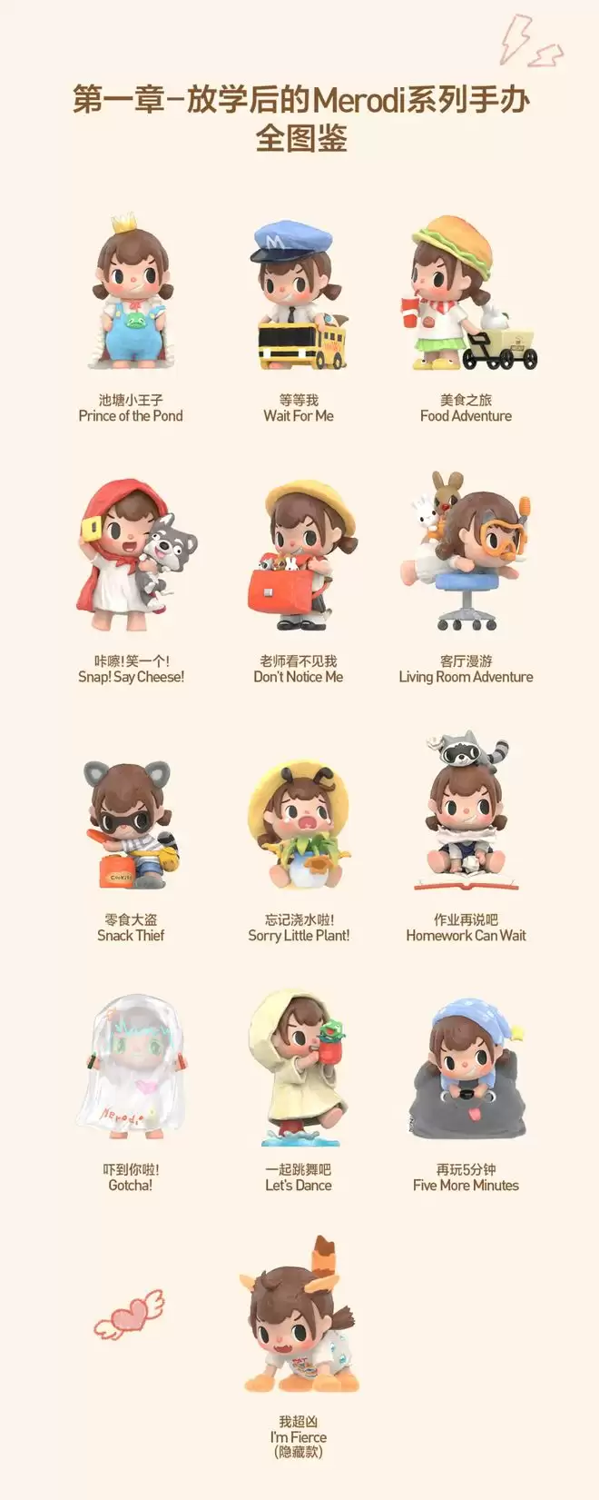 2026年2月20日,泡泡玛特推出了全新IP"放学后的Merodi",围绕校园和青春主题设计,包含12个常规款和1个隐藏款,单个盲盒售价69元,常规款的概率是1:12,隐藏款的概率是1:144。