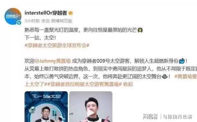 而小黄最近的重磅消息是登上太空旅游,主办方选择明星登空,也是为了宣传这个登空计划,反响的很不错。