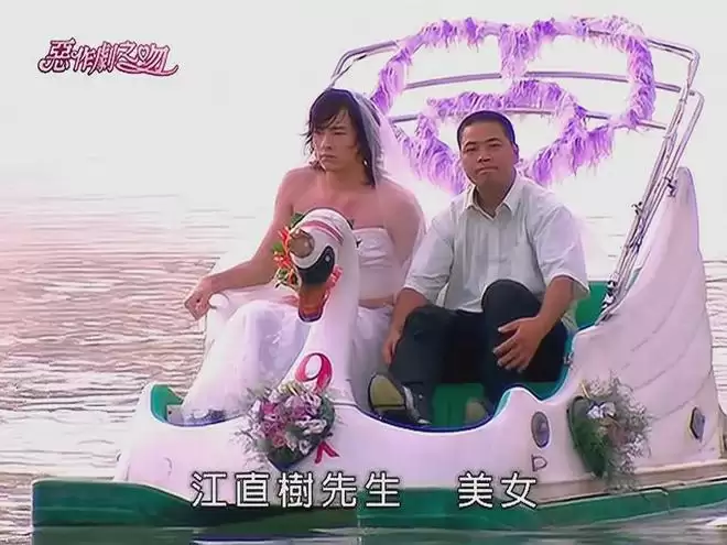 他们互换了婚纱和西装,男扮女装,女扮男装,样子十分搞笑。