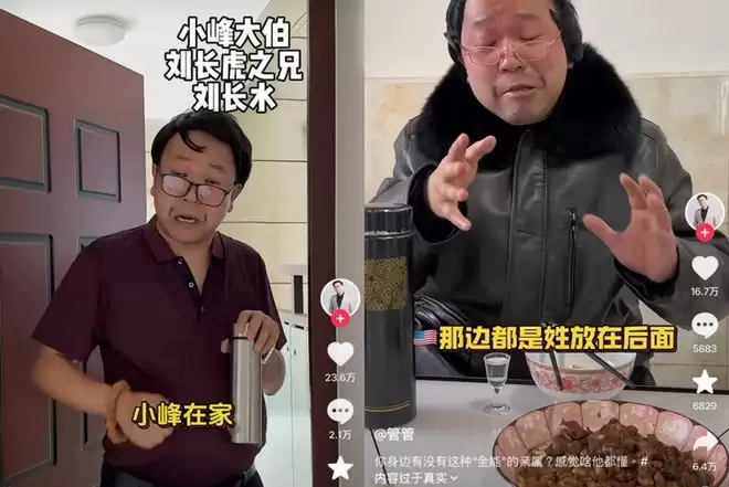 @管管 来自安徽,他的视频全程都使用方言,兼具方言的幽默感和浓郁的在地质感。内容聚焦的都是日常琐事,如父母拌嘴、孩子与父母的斗智斗勇、亲戚串门的趣事等等。特别的是,他会将一些生活中常见的矛盾和冲突,比如父母在吃饭时因为饭菜的口味争吵、亲戚借钱不还等等,以戏谑的形式消解,既引起了很多网友的共鸣,又能让人会心一笑。