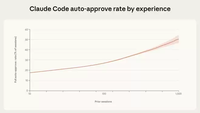 刚开始用Claude Code的人,只有大约20%的会话选择了「全自动批准」模式——也就是让AI自己跑,不用每一步都等人点头。