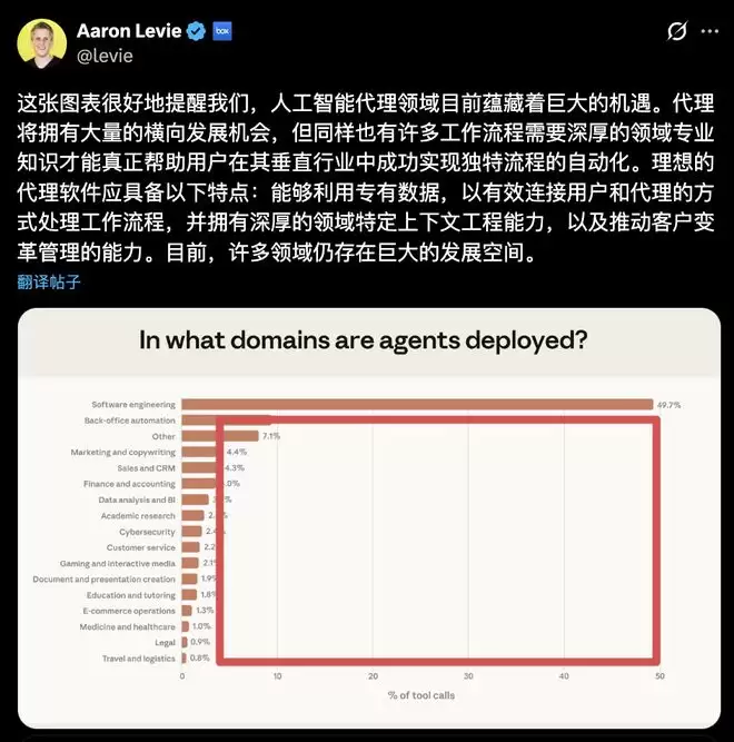 软件工程独占了49.7%的智能体工具调用量,像一根拔地而起的烟囱。