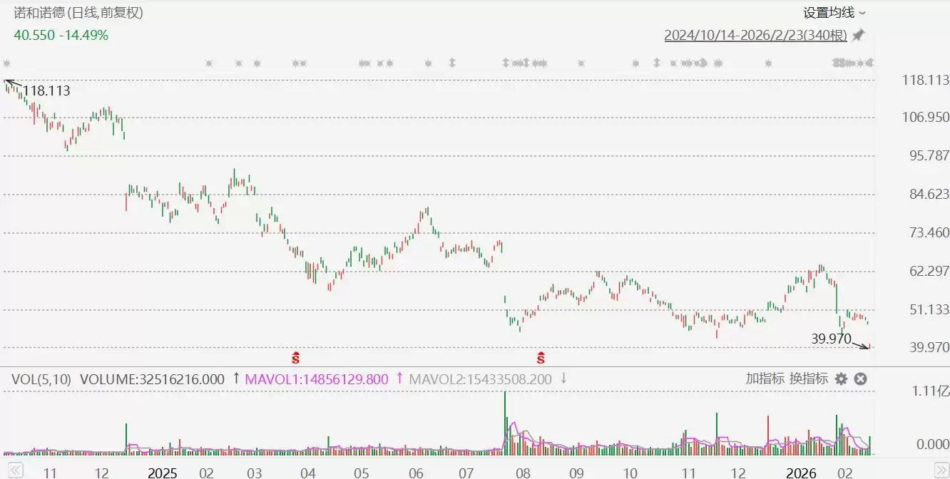 2月23日|诺和诺德(NVO.US)开盘后股价大幅下挫近16%,报39.97美元;礼来(LLY.US)则逆势上涨超4%,报1055.47美元。诺和诺德方面表示,其旗下减肥药物卡格列肽(Cagrisema)在临床试验中的效果未能超越礼来的替尔泊肽(Zepbound)。