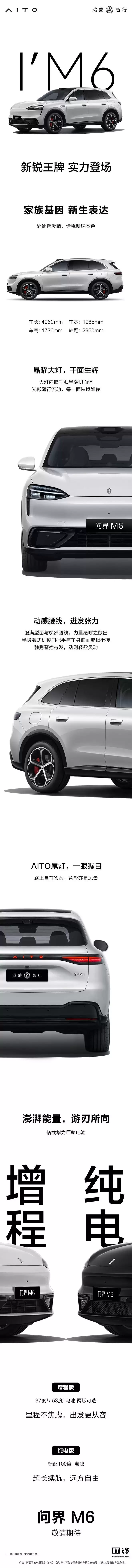 IT之家注意到,鸿蒙智行问界M6汽车已登陆华为商城,并开放预约通道。相关页面显示,新车定位为"新锐智慧SUV"。