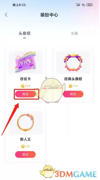 3、在装扮中心界面,点击改名卡选项,即可看到下方的【购买】按钮。