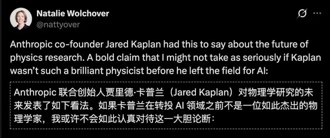 Anthropic联创、前物理学大牛Jared Kaplan放话:两到三年内,理论物理学家有50%概率被AI取代!