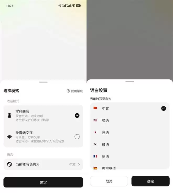 在Pro会员体验期间,我们可以使用全部的高级功能,在录音转写功能内,我们可以选择实时转写或者先录音后转文字,支持录音专业的语言多达数十种,非常丰富。