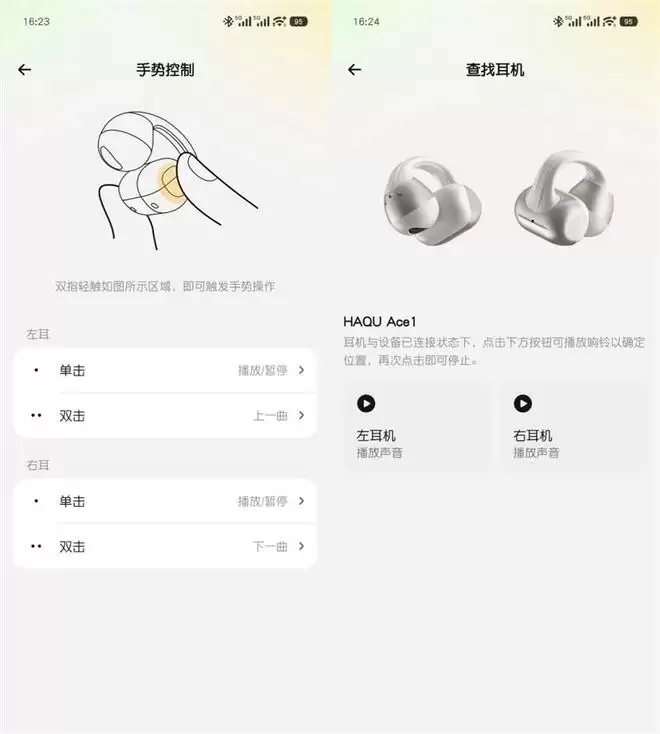 哈趣Popvee Link APP中也可以对手势控制进行修改,如果耳机意外遗失,也可以在这里控制耳机发出声响方便寻找。