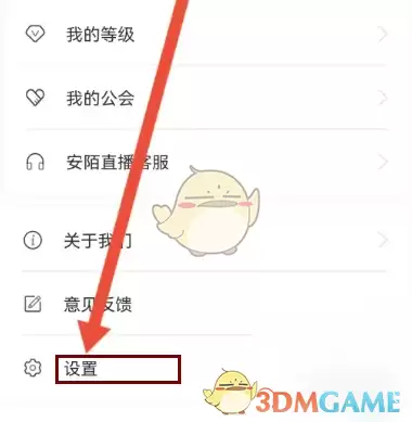 1、打开"安陌直播"软件,点击"我的"选择"设置"选项