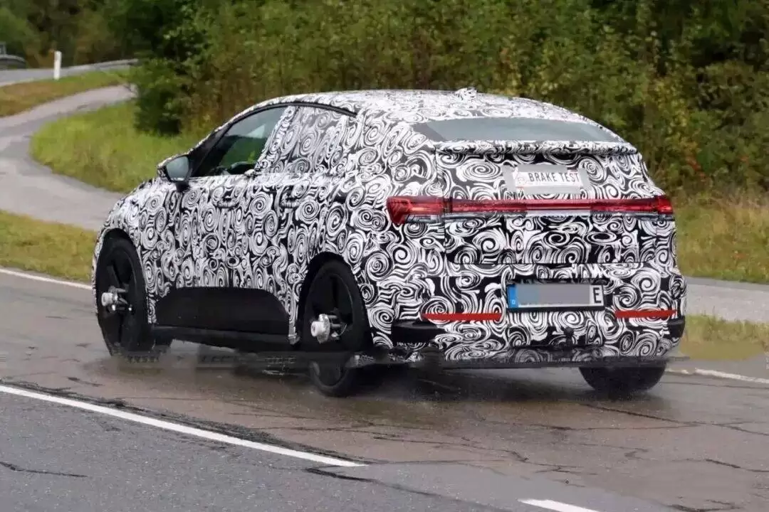 尽管测试车覆盖着严密的伪装涂层,但车身轮廓已清晰展现出奥迪最新家族设计语言。前脸采用与全新A6 e-tron同源的分体式大灯结构,灯组内部配备Matrix LED矩阵照明技术,可实现动态灯光交互效果。车尾设计尤为独特,溜背式线条搭配临时贴片的尾灯造型,后挡风玻璃嵌入尾翼上方的设计,更向经典车型奥迪A2致敬。