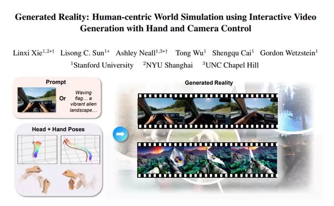 A:Generated Reality是由斯坦福大学等机构开发的AI系统,能够通过追踪用户的头部转动和手指关节动作,实时生成响应这些动作的虚拟世界。用户戴上VR头盔后,可以用自然的手势抓取物品、开门、挥旗等,AI会即时创造出相应的虚拟场景和交互效果,无需预先设计3D模型。