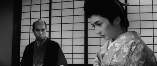 此时有一个关键的转折点。他正走在他那封闭的石头花园里的砖砌小路上。当他告诉阿市他会支持她时,他离开了小路,他的凉鞋在精心耙过的沙子上留下了脚印。他打破了规则,拒绝停留在界线之间,把自己的意志置于藩主之上。导演小林正树(1916-1996)自己就是个反叛者。