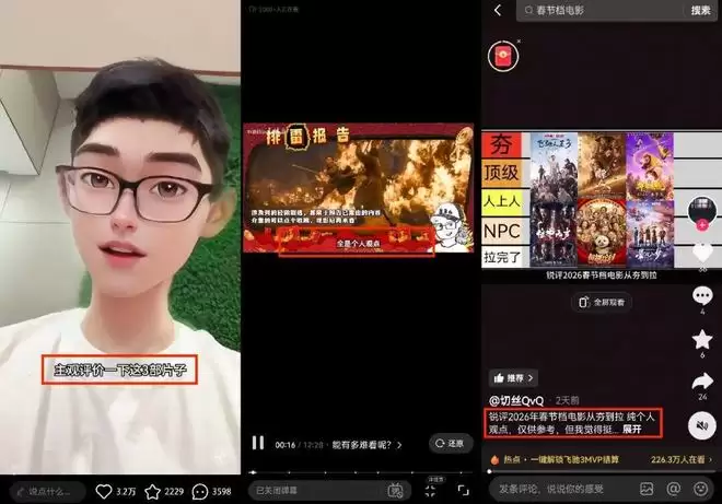 大年初一当日,当一个普通观众打开社交媒体想知道口碑走向之时,因为千人千面,无所适从,所有博主都在说“仅遵循个人感受”,而关于某部电影“好不好看”的帖子,从微博再到小红书,甚至是抖音,全都是清一色的“好看,好看”,哪里才能辨的真假。