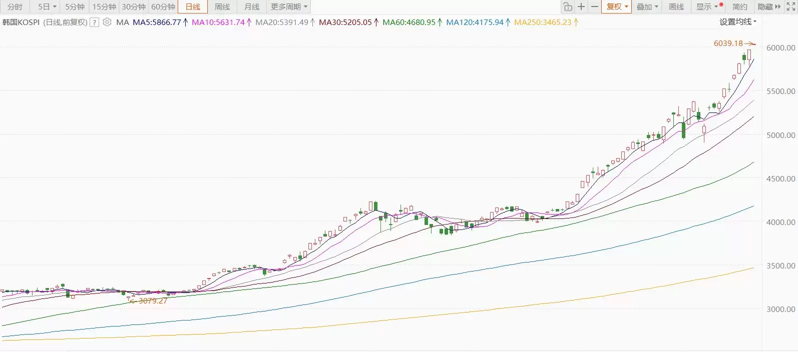 韩股首破6000点关口,今日高开逾1%