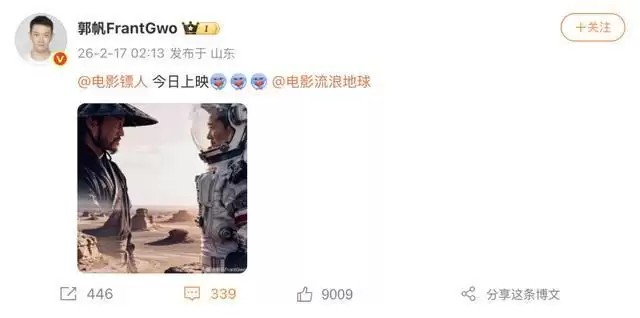 郭帆导演直接化身 “ 全自动镖人安利 bot” ,每天在微博疯狂转发《镖人》相关内容,网友都调侃他 “ 差点忘了自己的《球 3 》 ” 。《流浪地球 3 》官微也跟着调皮互动。网友一边每天催《流浪地球 3 》进度,一边对这部明年春节档要上的电影期待值也拉满了。中国电影人之间的有爱互动,看得人心里暖意融融。