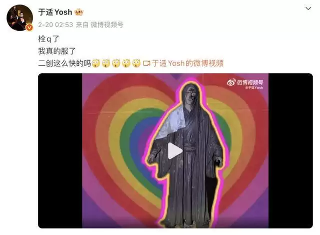 于适演的竖在片里一头白发,很有漫画感和喜感。微博超话里网友二创热情高涨,于适也转发回道: “ 栓 q 了,我真的服了,二创这么快的吗? ”