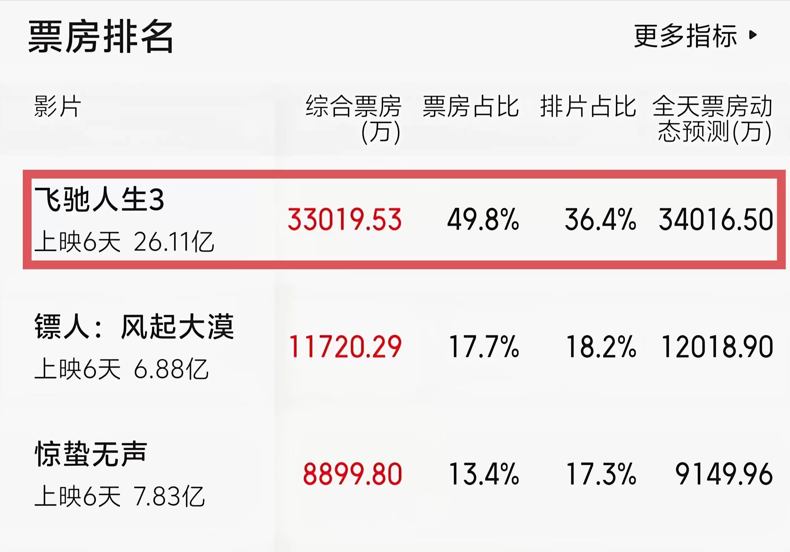 《飞驰人生3》从预售开始,就一直是票房、排片双榜第1,甚至在豆瓣刚开分时,还当过一段日子的评分第1。