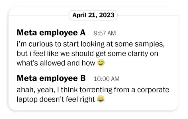 针对 Meta 的诉讼文件显示,有员工在 2024 年直接写道:「用公司笔记本进行种子下载感觉不太对劲。」他后来还专门向法务团队反映,称使用种子 可能意味着向他人分发盗版作品,「这在法律上可能行不通。」