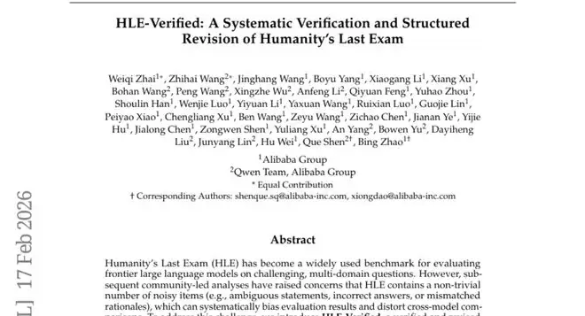 这项由阿里巴巴集团和阿里巴巴Qwen团队联合开展的研究发表于2026年的arXiv预印本平台,论文编号为arXiv:2602.13964v2。研究团队针对当前AI界最权威的评测基准"人类最后的考试"(Humanity's Last Exam,简称HLE)进行了全面的错误检查和修正工作,最终发布了经过验证的HLE-Verified版本。
