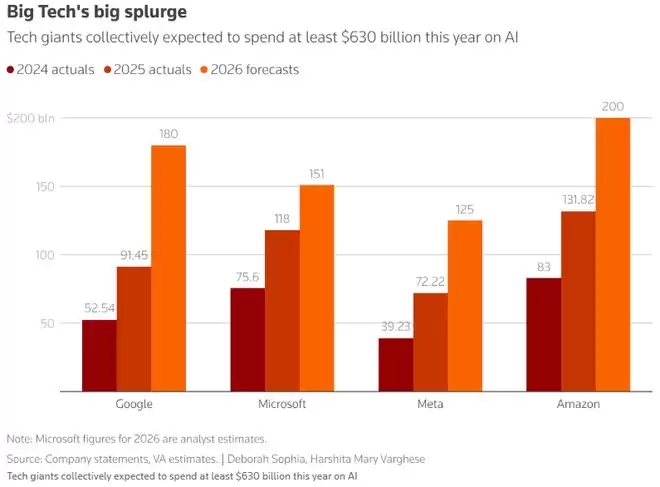 科技巨头预计今年将在人工智能领域总共投入至少6300亿美元