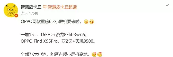 但一加15T和OPPO Find X9s Pro的出现,正在改变这个局面,一方面7K级电池解决了续航焦虑,旗舰芯片保证了性能释放。