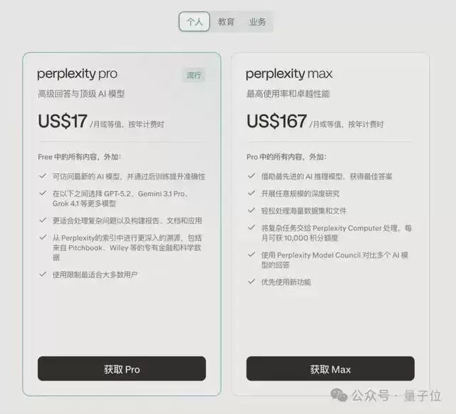 Perplexity Computer目前只对Max订阅用户开放,Max用户每月可获得10,000积分。