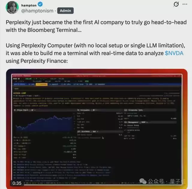 发布后仅5个小时,就有网友用Perplexity Computer手搓了一个平民版彭博终端机(Bloomberg Terminal)。