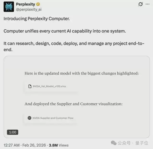 Perplexity发推表示,推出新产品Perplexity Computer,一个基于浏览器的、全能型通用数字员工。