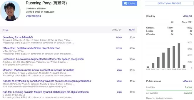 庞若鸣的职业生涯跨越了多家科技巨头,他本科毕业于上海交通大学,曾在谷歌工作了 15 年,先后加入了苹果与 Meta。