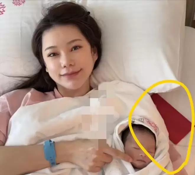 她穿着宽松的病号服,头发简单扎起,素颜出镜,但气色好得完全不像刚生完孩子的产妇。