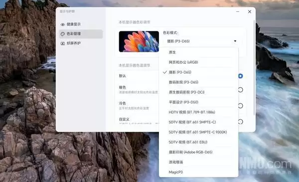 色彩表现上。荣耀MagicBook Art 14 2025支持原生10.7亿色、100% P3色域覆盖、ΔE<0.5的出厂校准,意味着无论是专业摄影师修图,还是视频创作者调色,都能获得准确可靠的色彩还原。更贴心的是,荣耀内置了多达13种色彩管理模式,你可以根据不同创作需求自由切换。