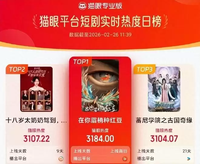 就在今天,《在你眉梢种红豆》一播出就彻底点燃了影视市场,这部由郑业成、赵晴领衔的古装奇幻中剧仅播6集就拿下平台热度第一。